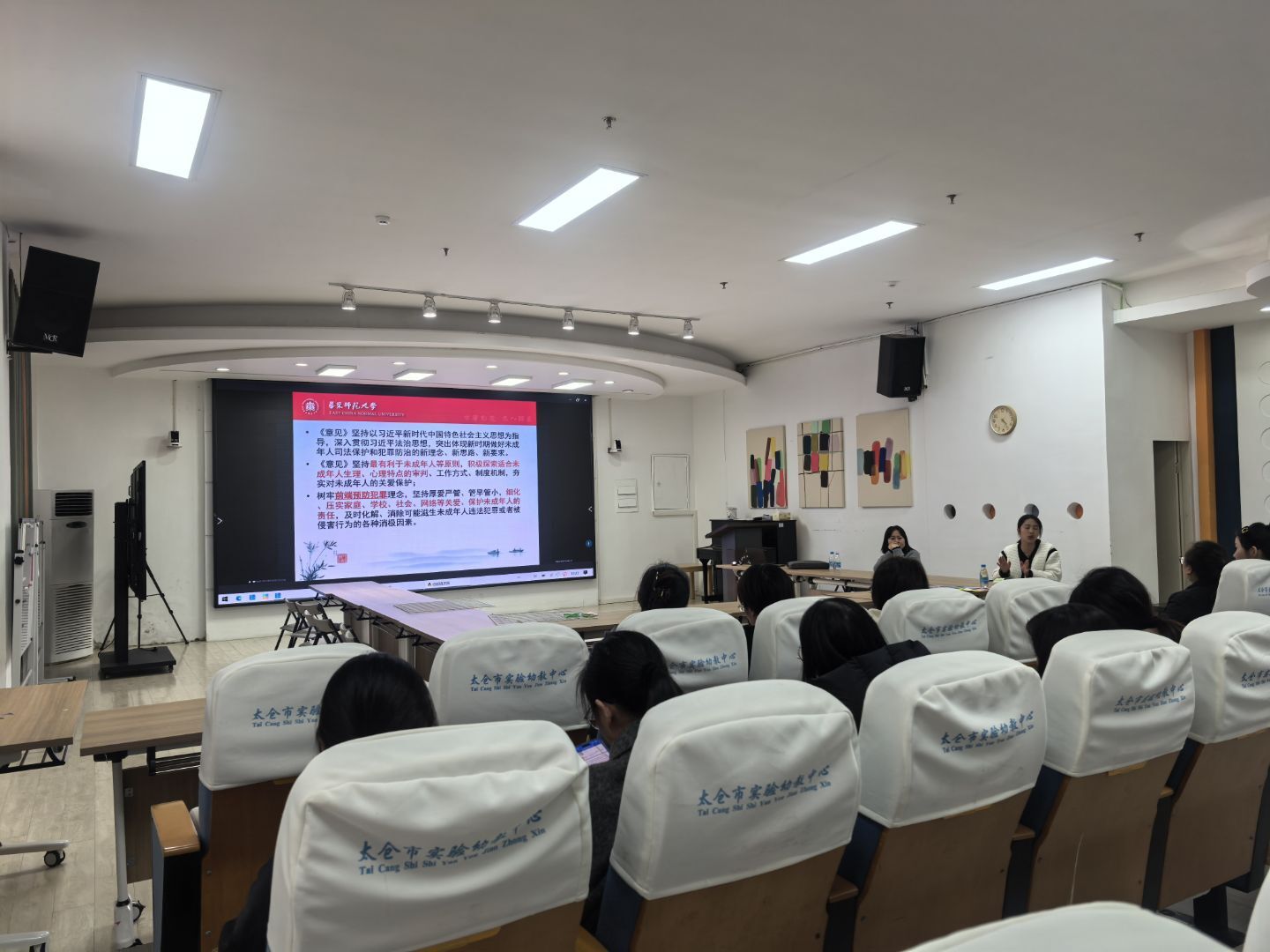 本次培训内容充实,针对性强。活动伊始,全体教师集中观看了由华东师范大学姚荣教授主讲的《未成年人权益保护与罪错行为预防矫治》专题视频。姚教授深入浅出地解读了《未成年人保护法》、《预防未成年人犯罪法》以及新修订的《治安管理处罚法》的核心精神与修订要点,特别是对“最有利于未成年人原则”、未成年人犯罪新动向、校园欺凌综合治理、强制报告制度等关键概念进行了细致剖析,并结合社会关注的典型案例,使抽象的法律条文与生动的教育实践紧密融合。
